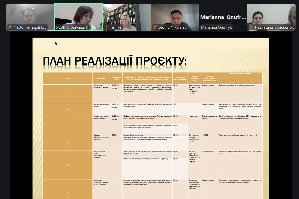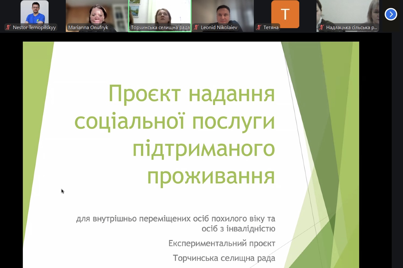 Паралельно онлайн-сертифікацію проходили управлінці органів місцевої влади та центрів соціальних служб. Менеджери демонстрували комплексні плани організації послуги підтриманого проживання з урахуванням різних компонентів — бюджету, команди фахівців, відповідного приміщення тощо.