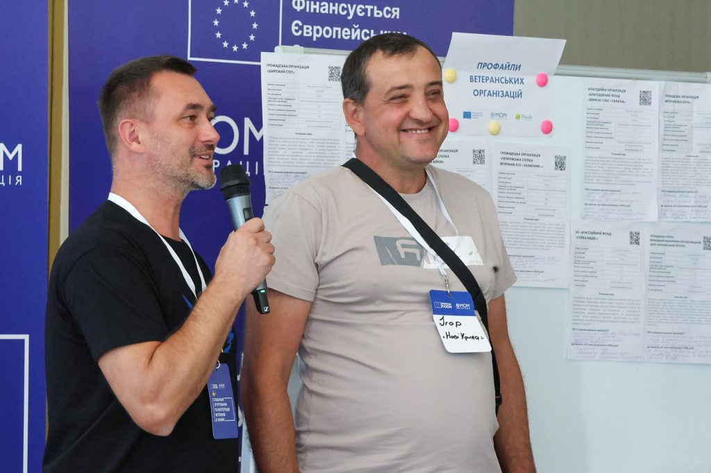Два десятки ветеранських спільнот із десяти регіонів України об‘єднали на форумі у Львові Міжнародна організація з міграції (МОМ) та благодійний фонд «Рокада» за фінансування Європейського Союзу. Майстерня партнерств покликана зміцнити співпрацю між організаціями і допомогти учасникам розширити мережу спільнодії. Це перший крок у довготривалій ініціативі.