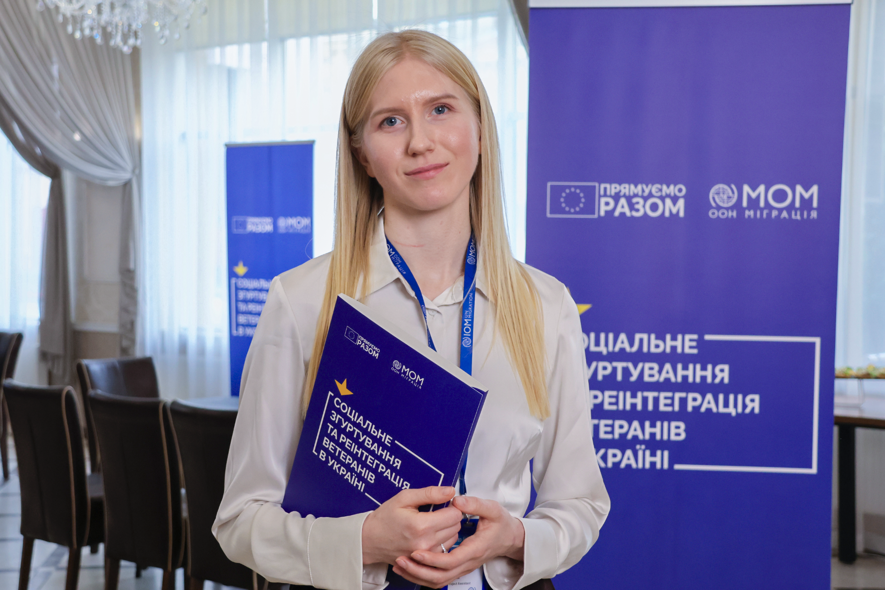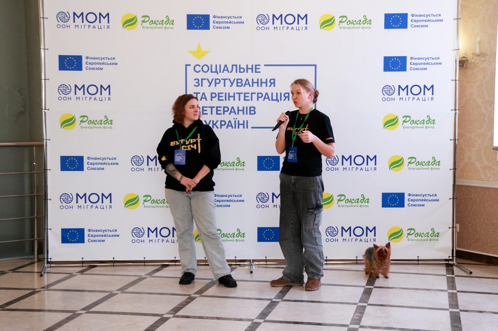 Проєкт «Соціальне згуртування та реінтеграція ветеранів в Україні» реалізується у співпраці з Міжнародною організацією з міграції за фінансування Європейського Союзу.