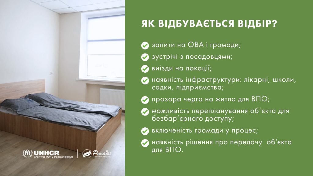 СЛІД РОЗУМІТИ, ЩО НІХТО НЕ ЗНАЄ, СКІЛЬКИ ЩЕ ЧАСУ ВНУТРІШНЬО ПЕРЕМІЩЕНИМ ЛЮДЯМ ДОВЕДЕТЬСЯ ЖИТИ У ТАКИХ «ТИМЧАСОВИХ» ПРИХИСТКАХ. ЦІЛКОМ ІМОВІРНО, ЩО ЗГОДОМ ЦІ ПРИМІЩЕННЯ МОЖУТЬ СТАТИ СОЦІАЛЬНИМ ЖИТЛОМ