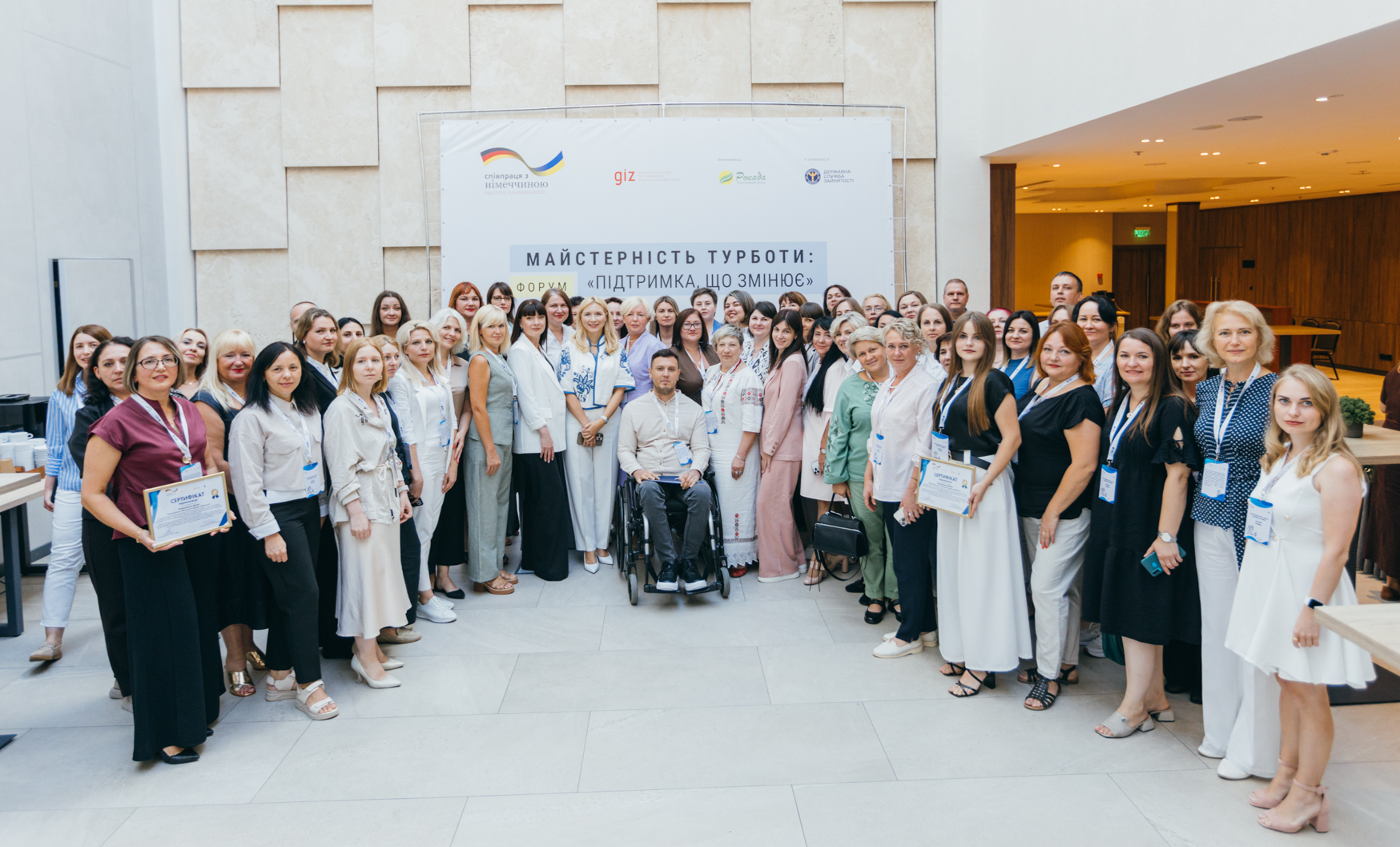 Форум «Майстерність турботи: “Підтримка, що змінює”» відбувся 19 серпня у Києві та обʼєднав 60 представників Державної служби зайнятості з різних куточків України. Подія стала логічним завершенням онлайн-навчання «Майстерність турботи: сучасні навички підтримки, комунікації та стійкості фахівців Служби зайнятості», до якого долучилися 4 296 працівників філій і регіональних центрів. Створення цього курсу ініціював Благодійний фонд «Рокада» і втілив його у співпраці з Державною службою зайнятості за фінансування Уряду Німеччини та підтримки GIZ Ukraine.